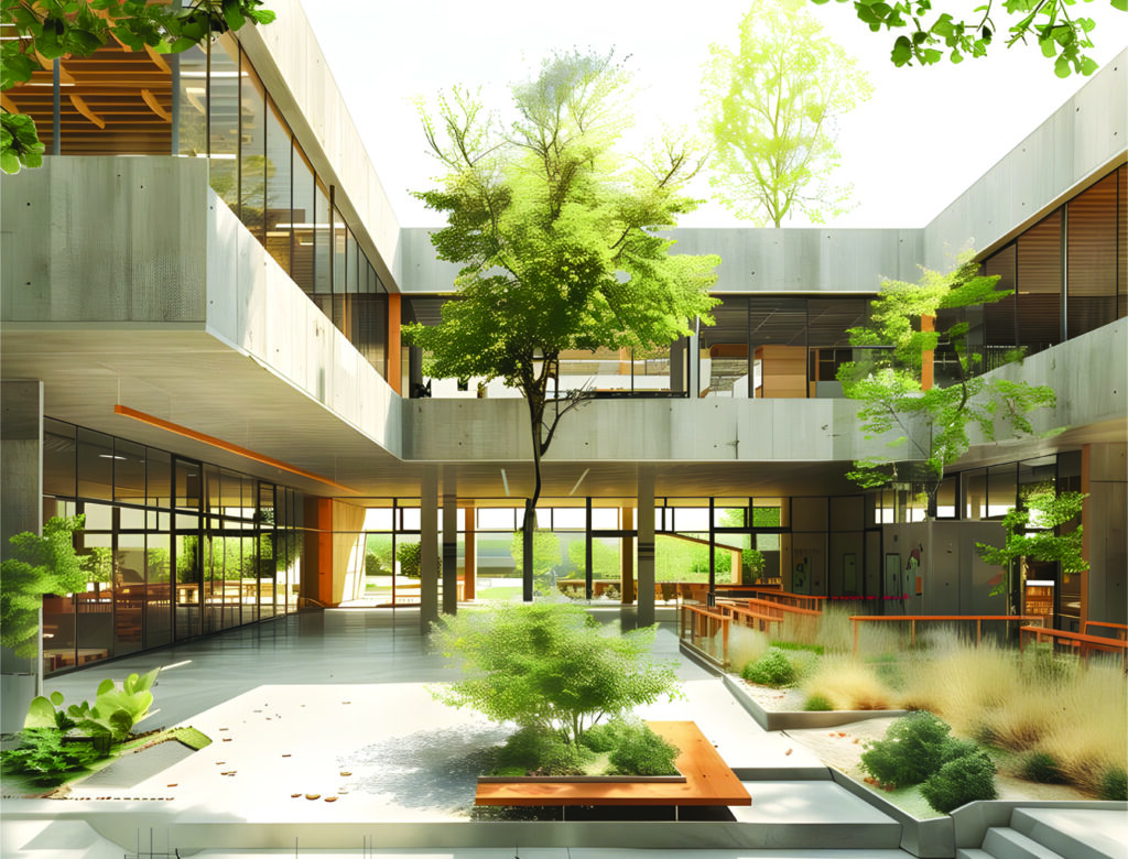 Le collège se situe sur la route de Tétouan marie élégance contemporaine et innovation. Les façades dynamiques et colorées apportent une touche de modernité à l’architecture éducative, abritant 15 salles de classe, une cantine et un terrain omnisport, articulés autour d‘un patio central.