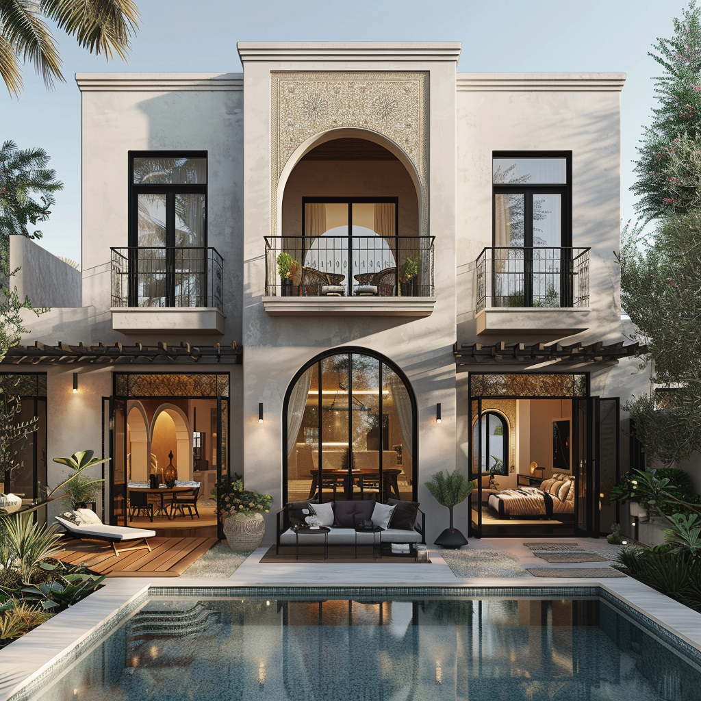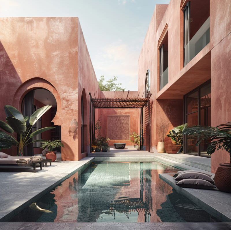 Les lignes épurées, les arches mauresques et les toits en tuile s’intègrent harmonieusement dans le paysage urbain, tout en utilisant des matériaux locaux et des couleurs chaudes pour créer une ambiance accueillante et authentique.